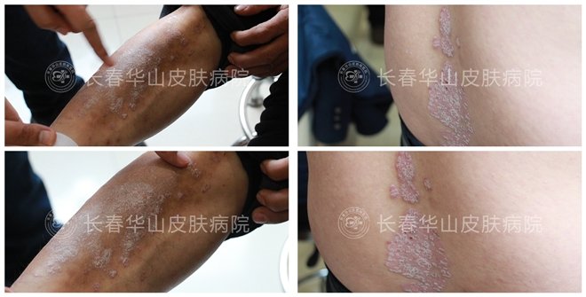 现病史:最初时,腿部出现红色如栗粒样大小丘疹,用过偏方和药膏涂抹,没有看到明显效果,病情反而越发严重,逐渐扩散到了胳膊、后背、头部。患者的病情比较复杂,因长期饱受银屑病折磨、并且病情日渐加重,遂来我院就诊。